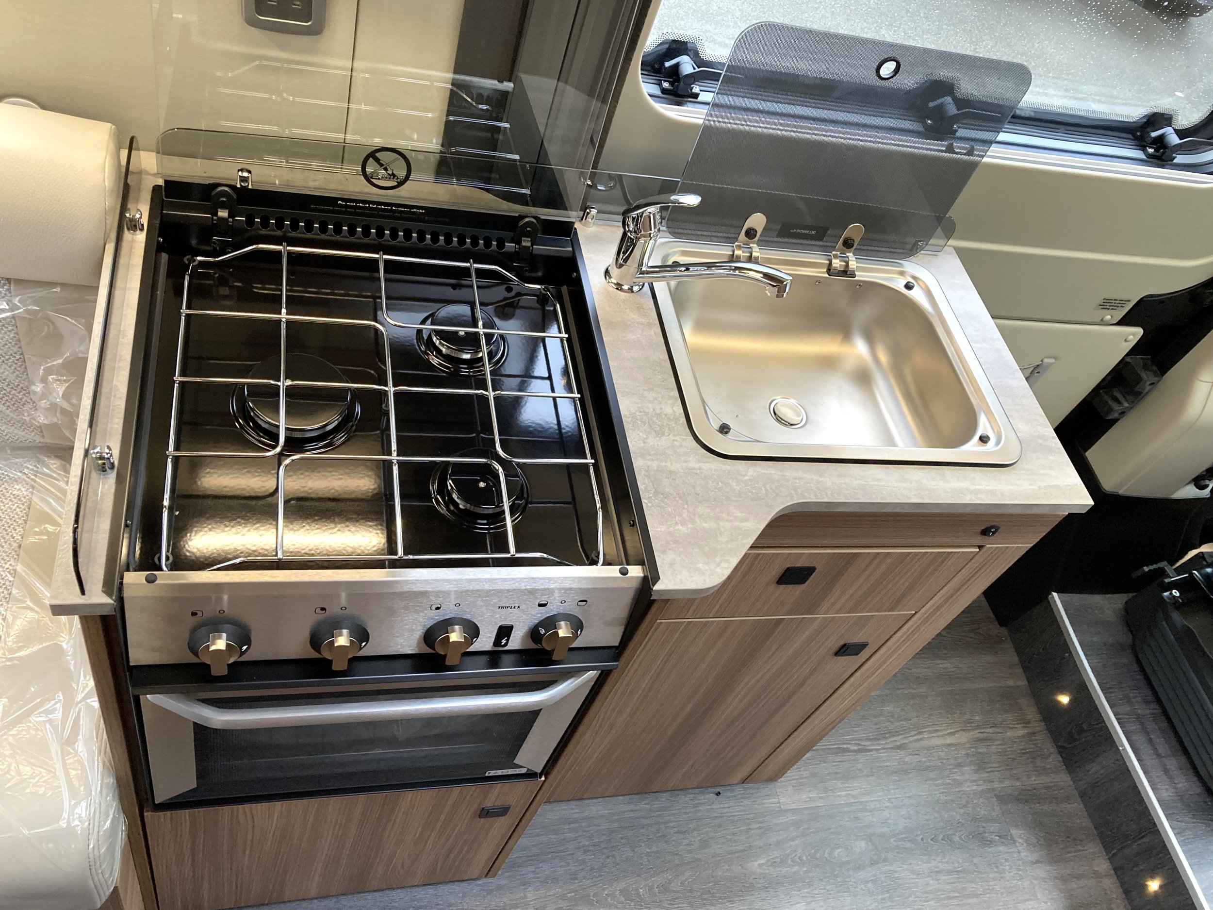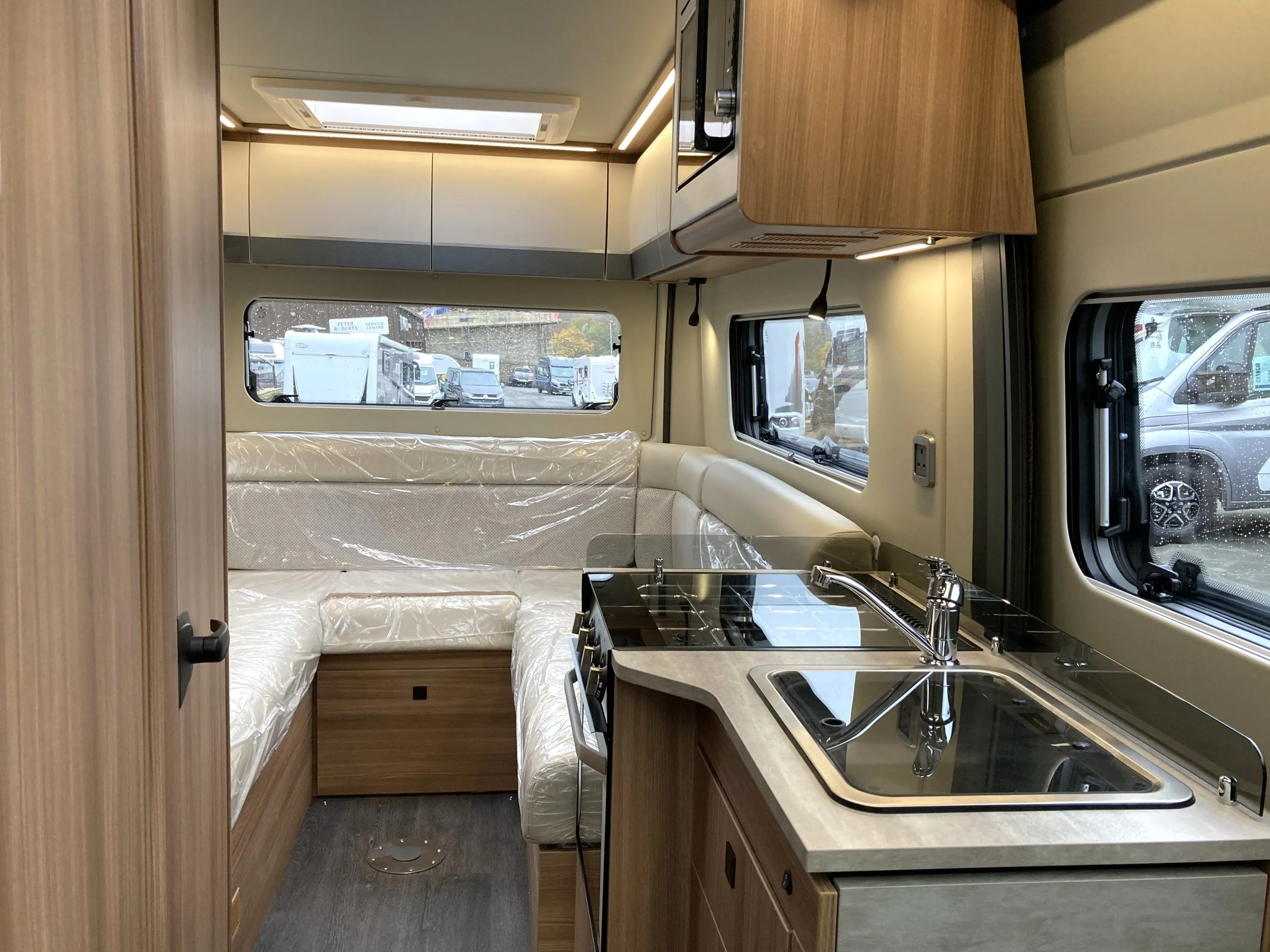 This vehicle is under 6m therefore can provide car-like driveability when for your adventures. At the front of the motorhome there is a contemporary kitchen space featuring combination cooker, fridge/freezer, sink and plenty of storage surrounding.