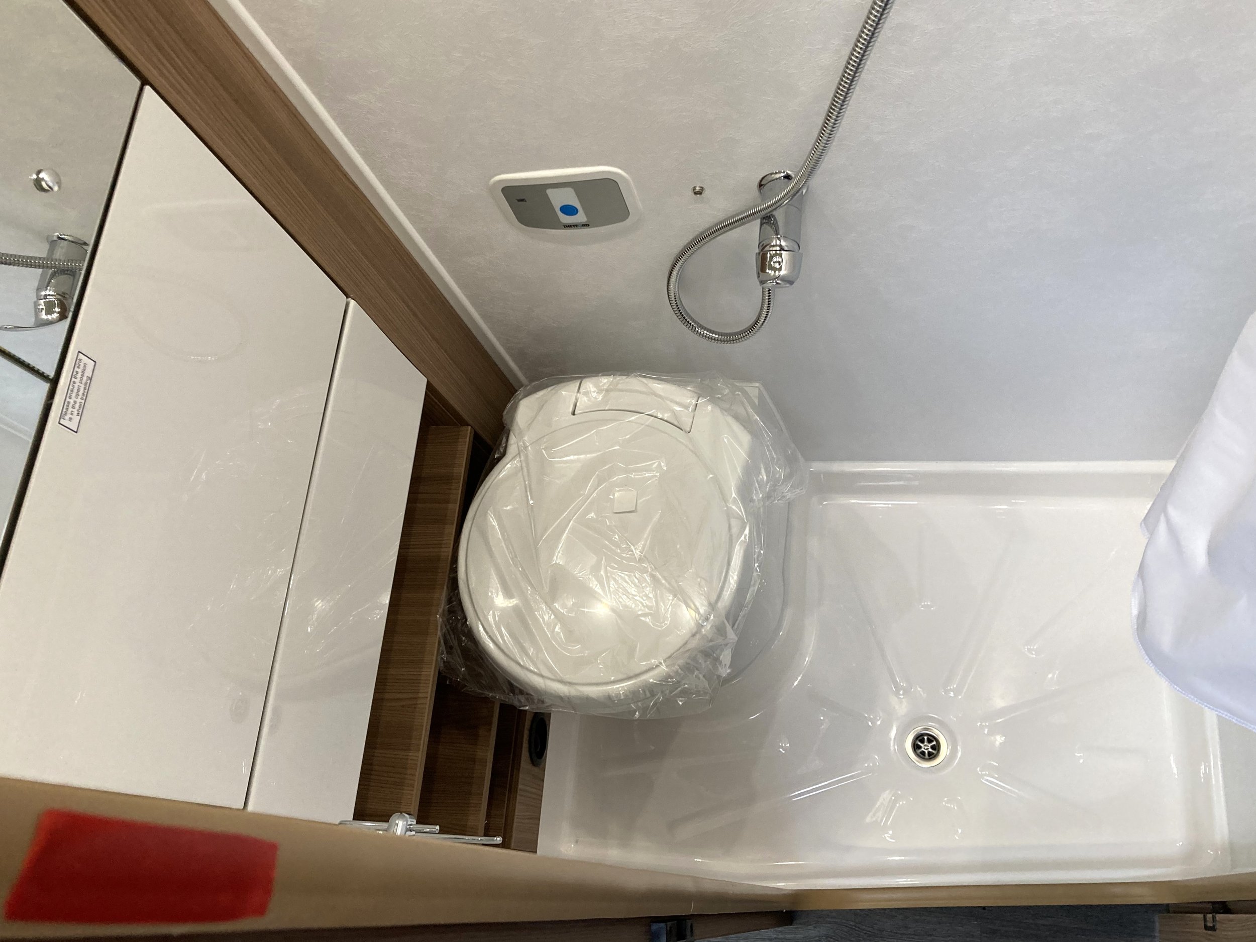 The central washroom provides a shower, sink/vanity unit and cassette toilet.
